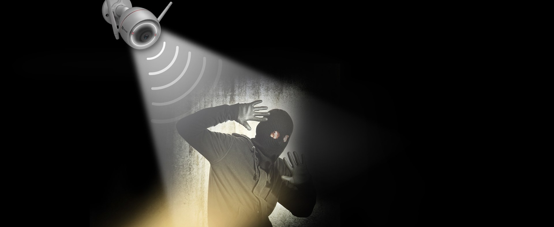 Upon detection, the C3W (ezGuard) activates a loud siren and strobe light to scare off intruders. The siren can reach up to 100 dB strong enough to act as a deterrent.