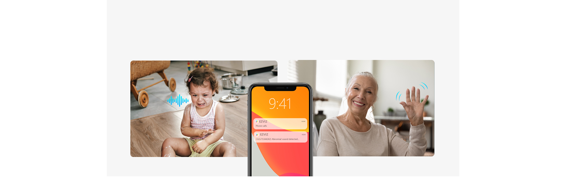 The camera alerts you if the noise level suddenly changes – whether your baby cries or a siren breaks out. Your family members can also simply wave at the camera to initiate a video call to your phone.