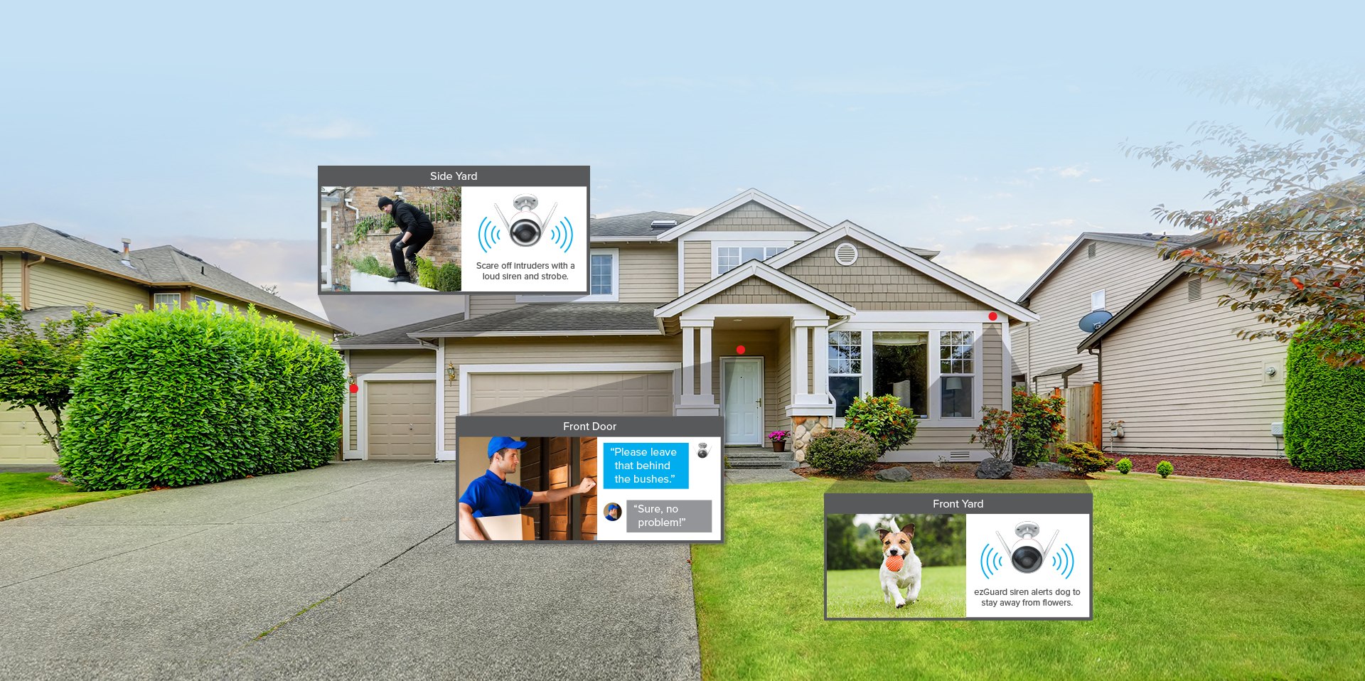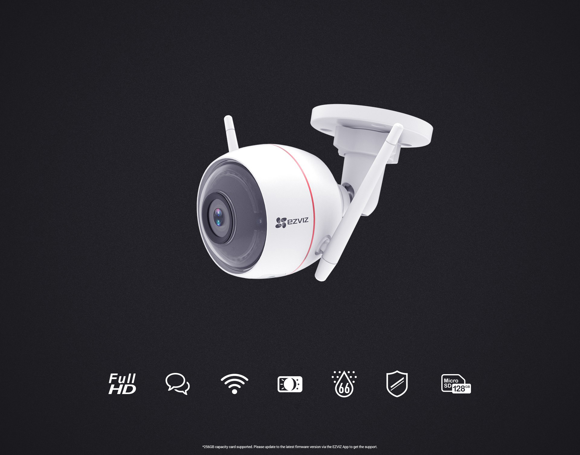 The C3W (ezGuard), a Full HD wall-mounted outdoor Wi-Fi camera, uses a built-in strobe light and alarm for deterrence, while also offering two-way talk and durability in any type of weather.