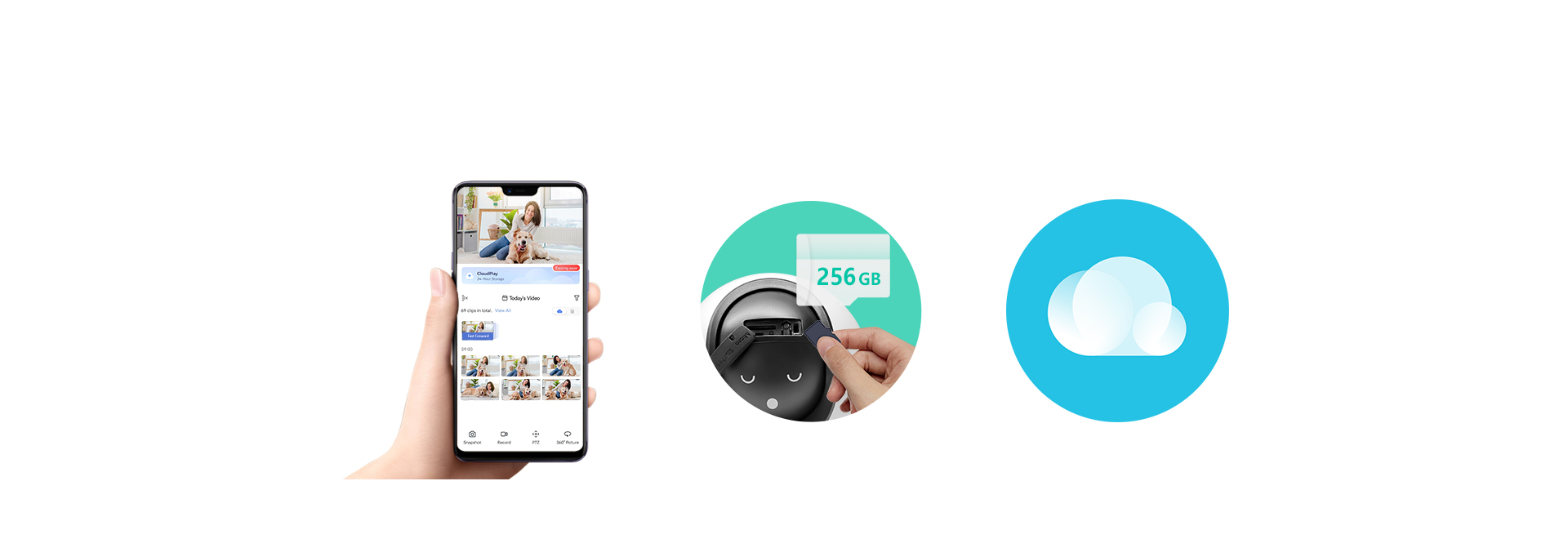 Secure your unforgettable moments on a local microSD card of up to 256 GB, or subscribe to EZVIZ CloudPlay for fully-encrypted cloud storage and extra peace of mind¹.
