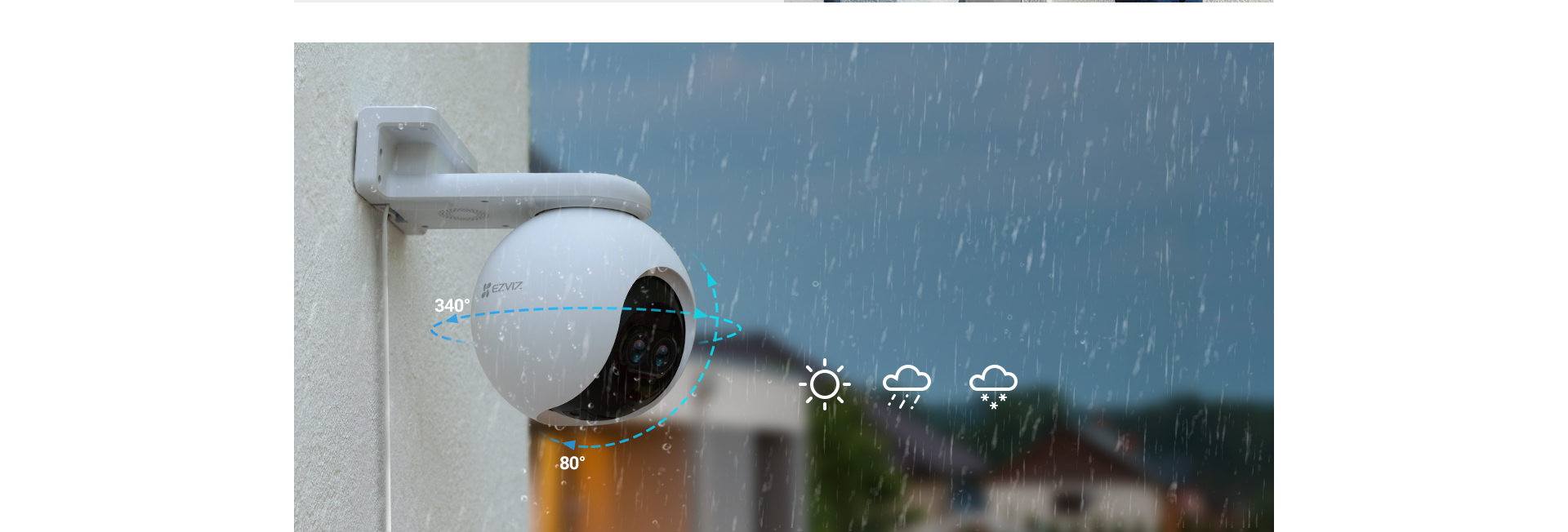 The C8PF excels in both flexibility and durability.With the pan & tilt design, it delivers 360-degree panoramic field-of-view to avoid blind spots, all through easy click-and-drag app controls. The C8PF is also fully weatherproof for long-standing performance even in stormy weather.