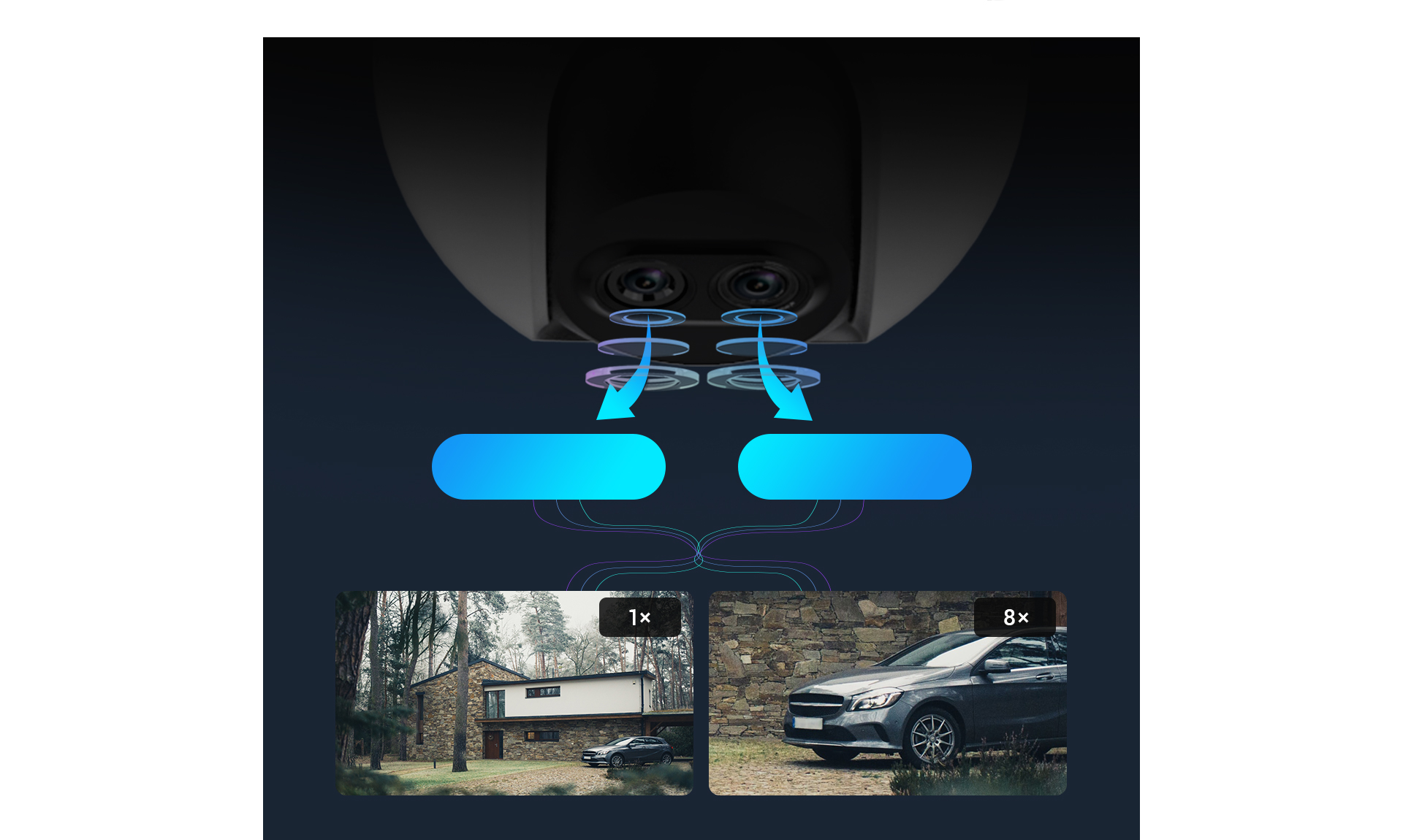 With the award-winning C8PF, you will never miss the bigger picture while also seeing what’s important – down to every detail. This pan-tilt-zoom camera features advanced dual-lens technologies to fulfill unprecedented 8-time mixed zoom for home protection, and provides a picture-in-picture video display mode of both wide and close-up views.